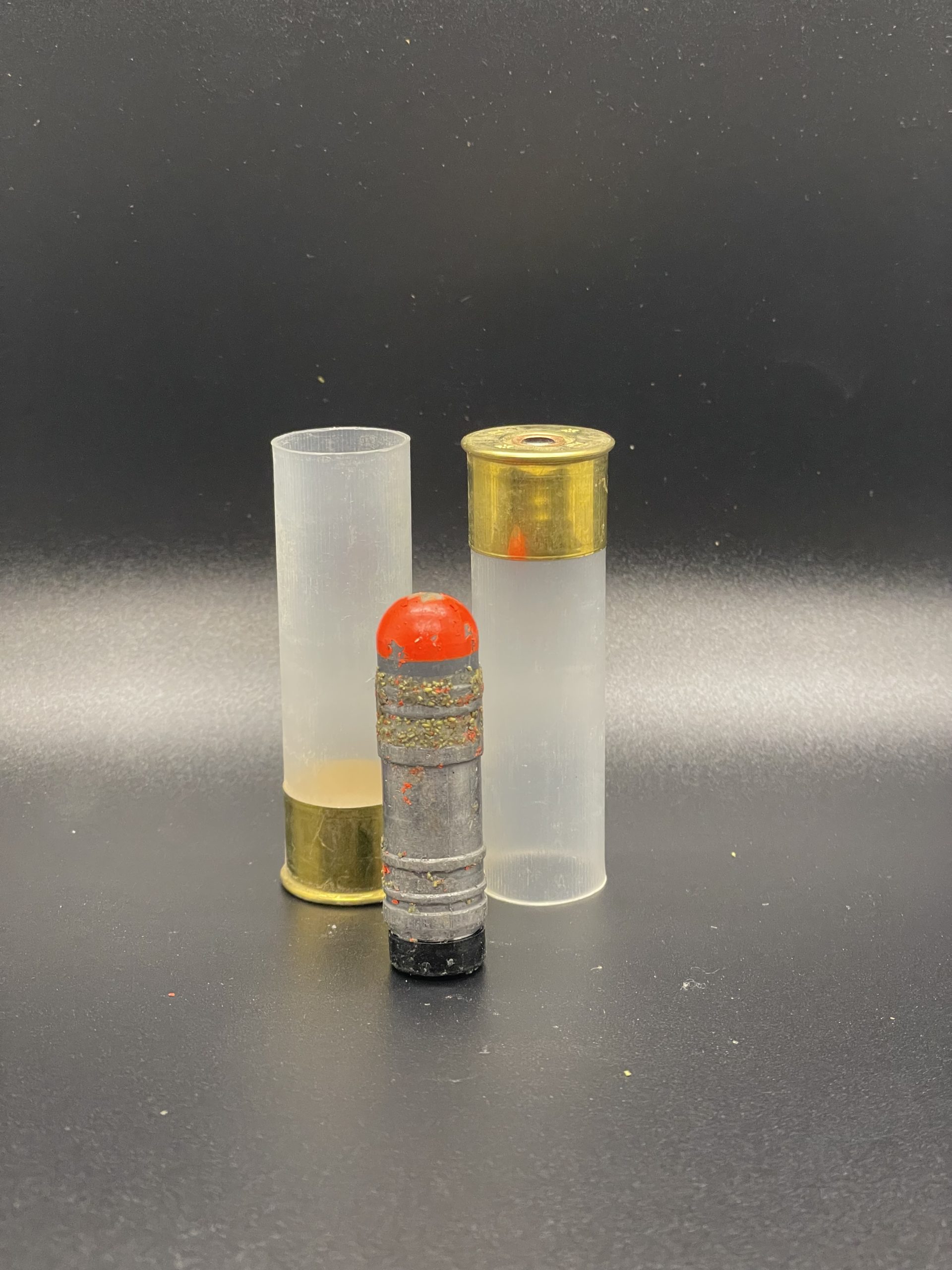 12 Gauge point Air Burst. with this you get 100 12 gauge 2-3/4″ primed hulls and 100 14.5mm air burst projectiles, all you need is powder and you can load your own 12 gauge Air burst rounds. Kit comes in a free 50 caliber metal ammo can.