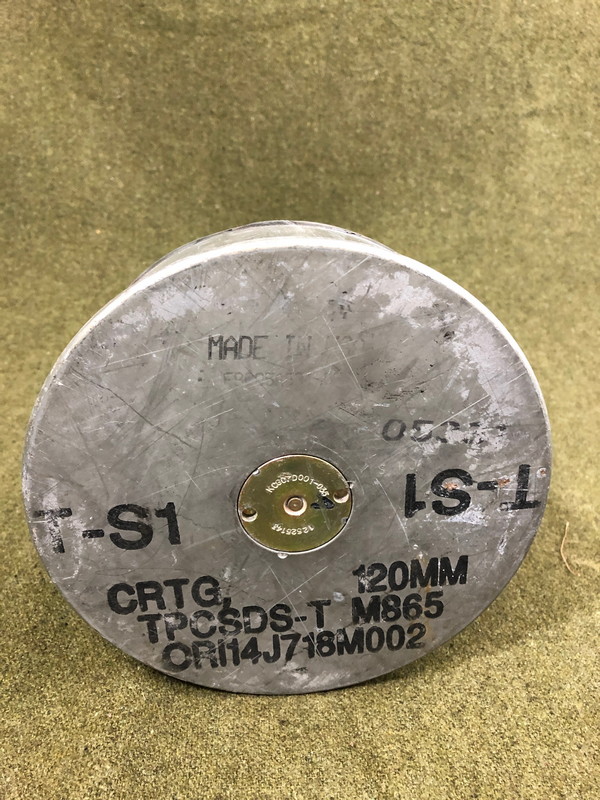 120MM Caseless cartridge Aft Cap with fired primer tube.  Case cartridge Aft Cap marking are different on every shell head, shell head in picture is just for reference. If you are looking for a specific markings on the shell head let us know in the order notes and we will try to accommodate your request, if we do not have that specific one we will replace with one we do have.  Shell head will be shipped with primer tube unscrewed so you will have to screw in primer tube, we will make sure threads are good and tube will thread in easily before shipping.