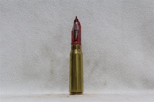 Be the first to review “20mm Phalynx- fired brass case dummy round with broken red sabot (cutaway?), Price Each”