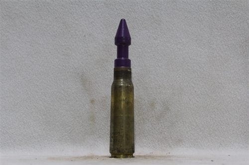 20mm Vulcan dummy round with fired brass case and purple proof test projectile, Price Each