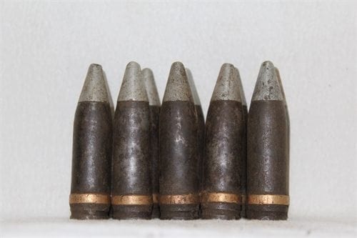 20mm Vulcan tp projectile, long, no paint, with copper driving band, as-is, pack of 10