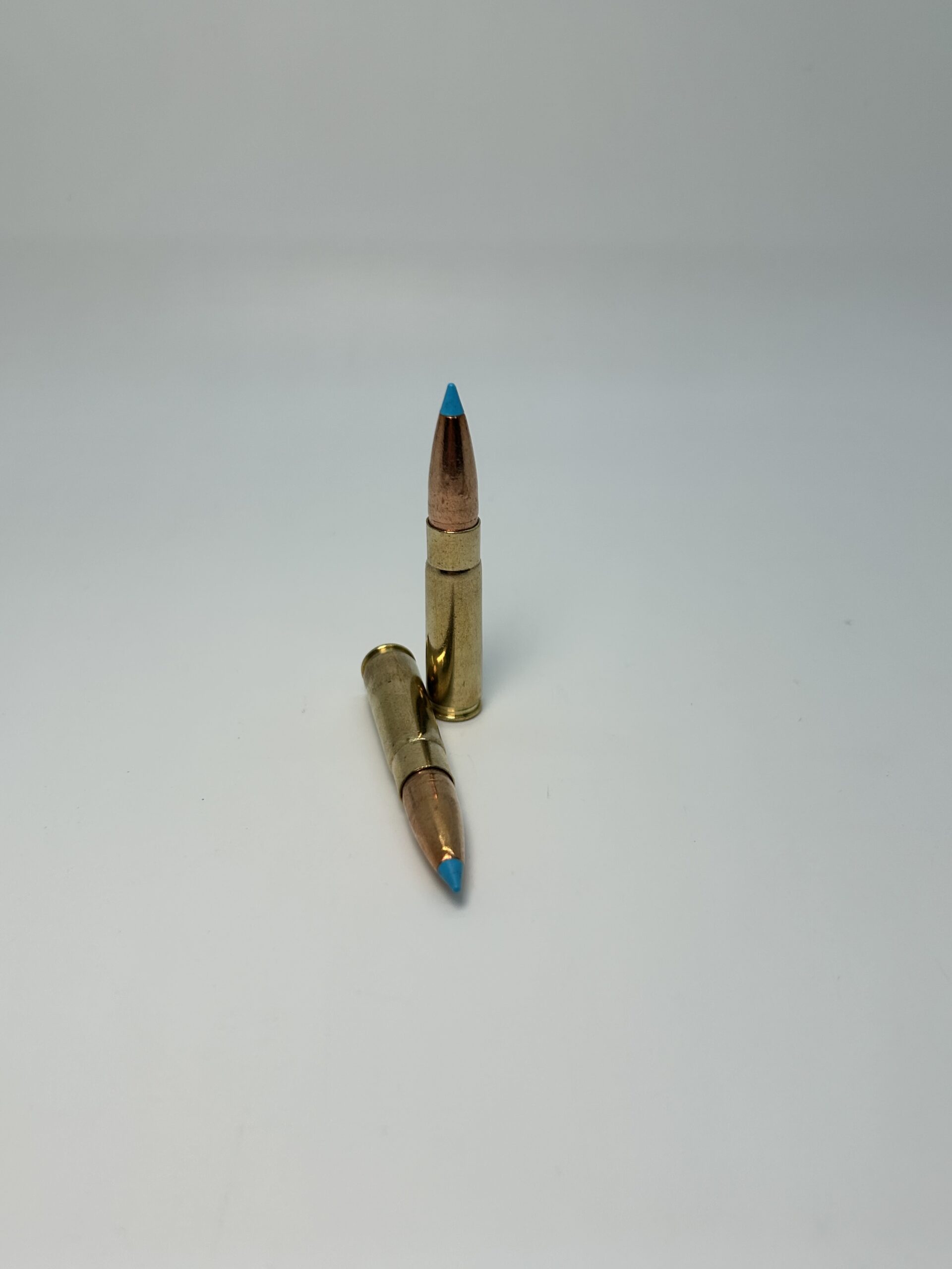 New generation lead free bullets Modern, highly efficient design incorporating a boat-tail base with a new, pointed tip for a flat trajectory and maximum retained energy. Blue plastic tip enhances expansion at all ranges while the solid copper construction maximizes weight retention.
