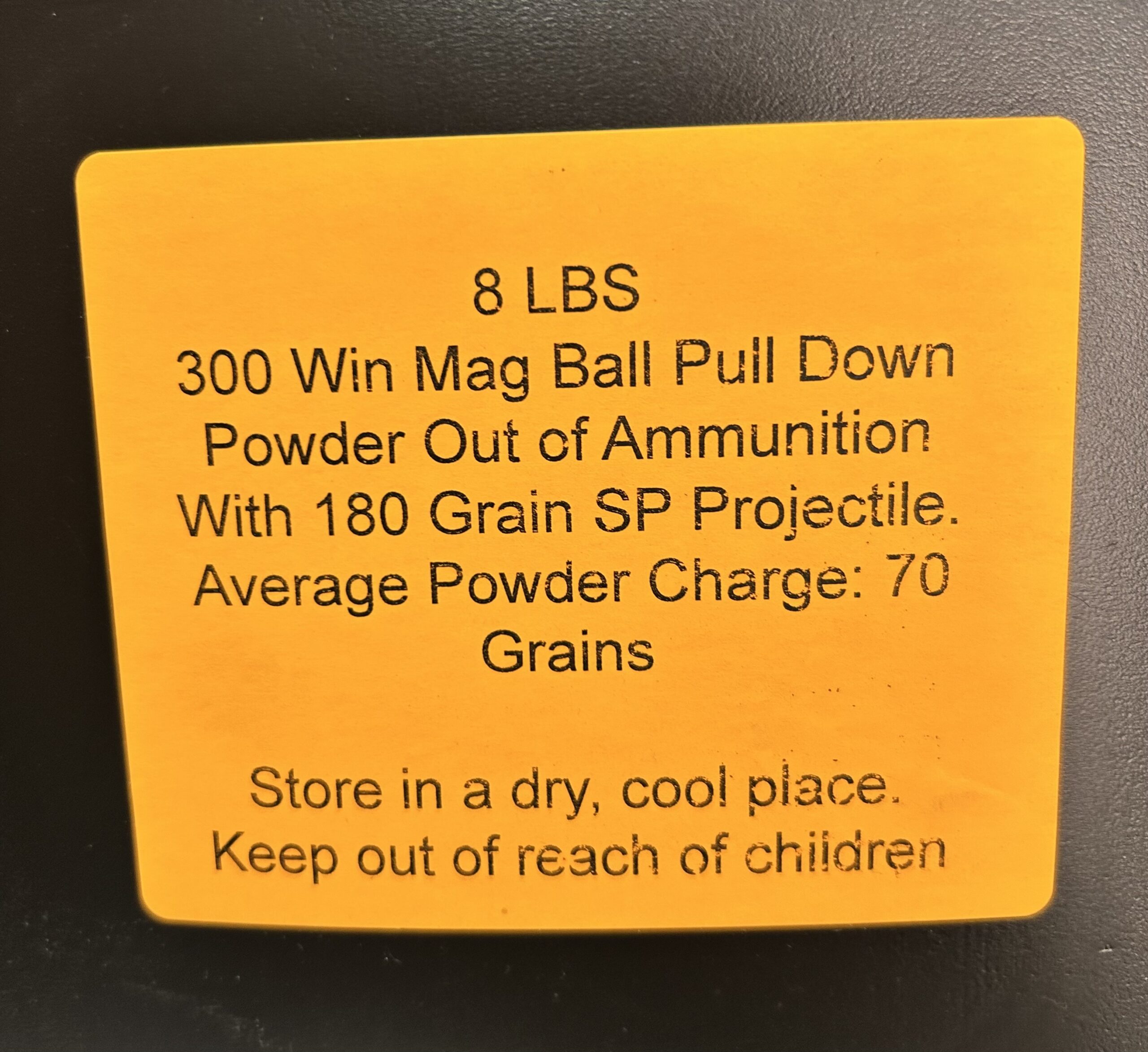 300 Win Mag Pull Down Powder Pulled out of Ammunition with 180 Grain SP Projectiles. 8 LBS