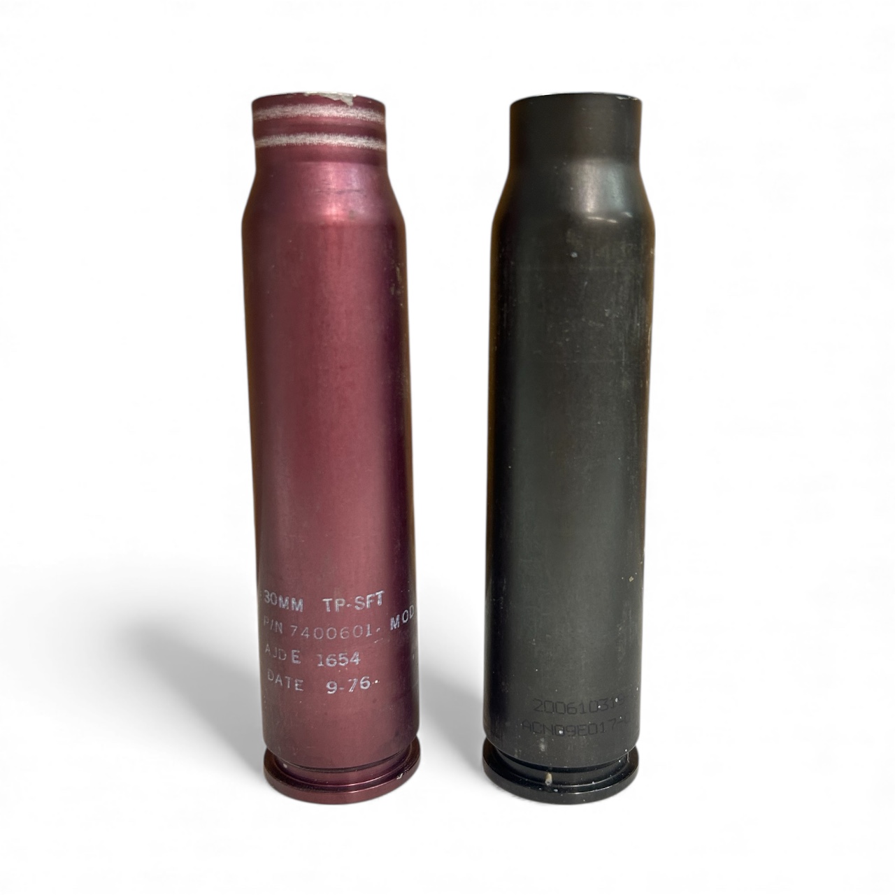 30mm Vulcan GAU-8 new, primed cases, Price Each. We have 5 purple ones and the one dark gray one shown in the picture.