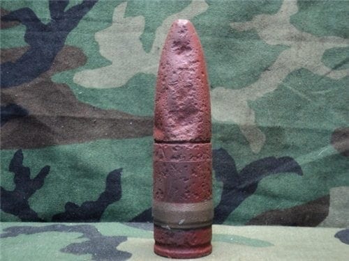 40MM L-60 BOFORS APT PROJECTILE WITH BADLY PITTED OR DENTED WINDSCREEN (WINDSCREEN CAN BE REMOVED TO REVEAL AP PROJECTILE)
