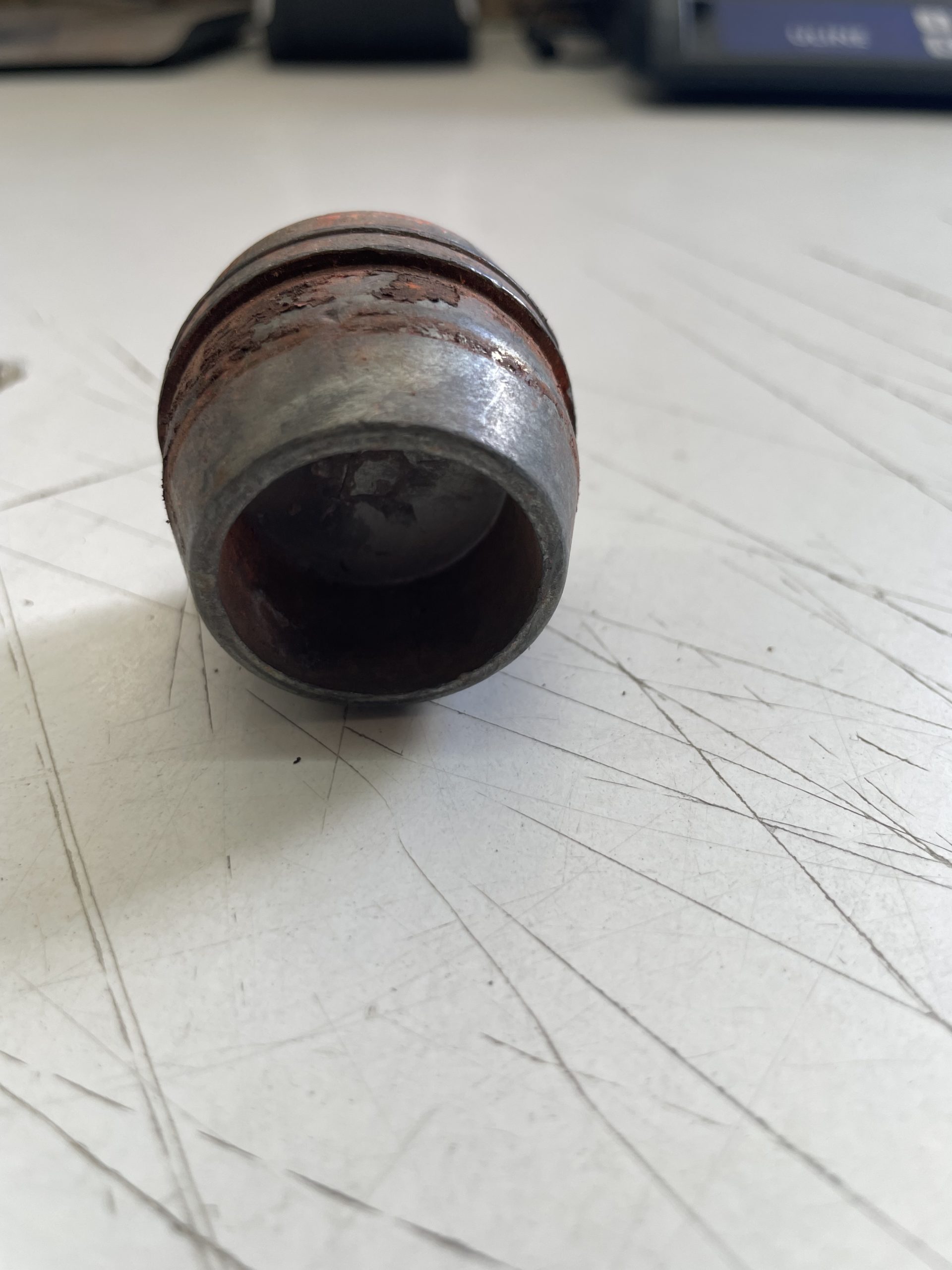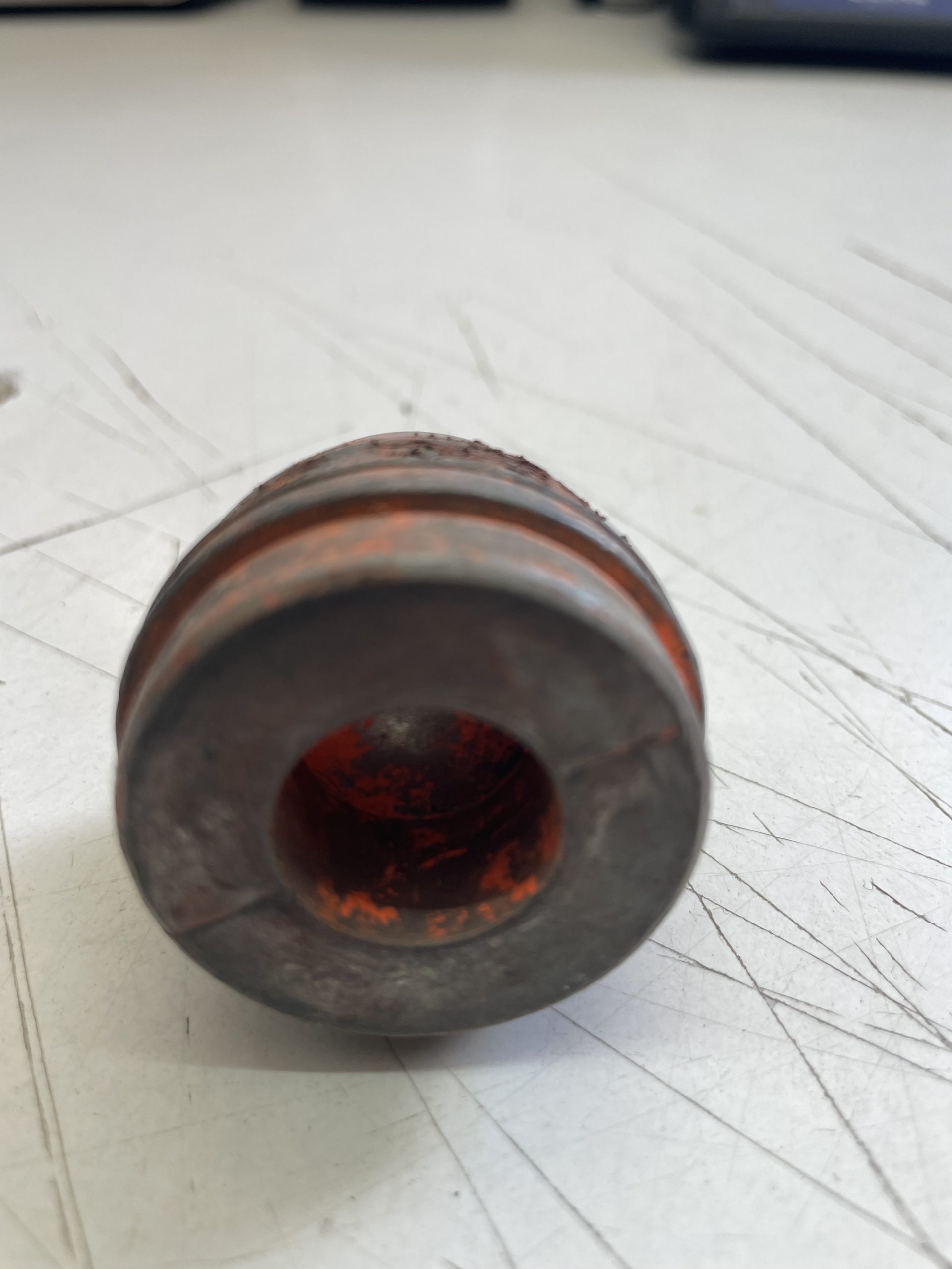 40MM M781 zinc pusher projectile. These have been pulled out of loaded rounds and will have traces of orange chalk and sealer on them. each projectile. each projectile weighs approximately 6 OZ.