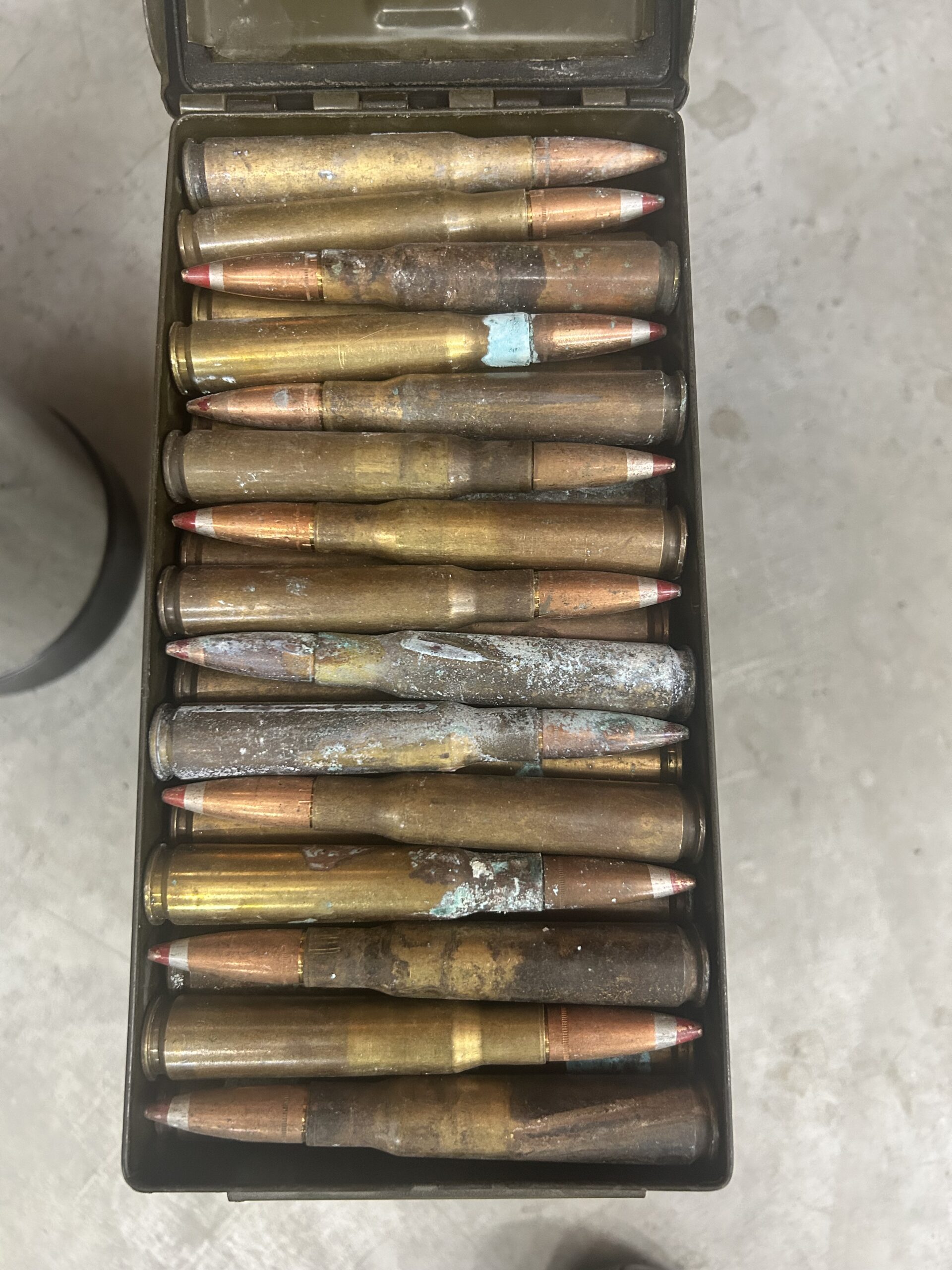 50 Caliber APIT Dirty, Grungy Components. Sold AS COMPONENTS ONLY. 150 Round Can.
