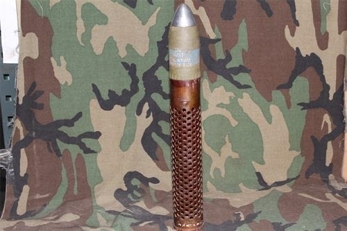 57mm recoiless dummy round. Projectiles have legible markings on them but markings are not perfect. fuse is made of aluminum and screwed in to projectile. Rifling grooves are pre-machined into all recoilless projectiles, it’s part of how the recoil is reduced… not making the gun do that work, along with the re-directing of gasses.