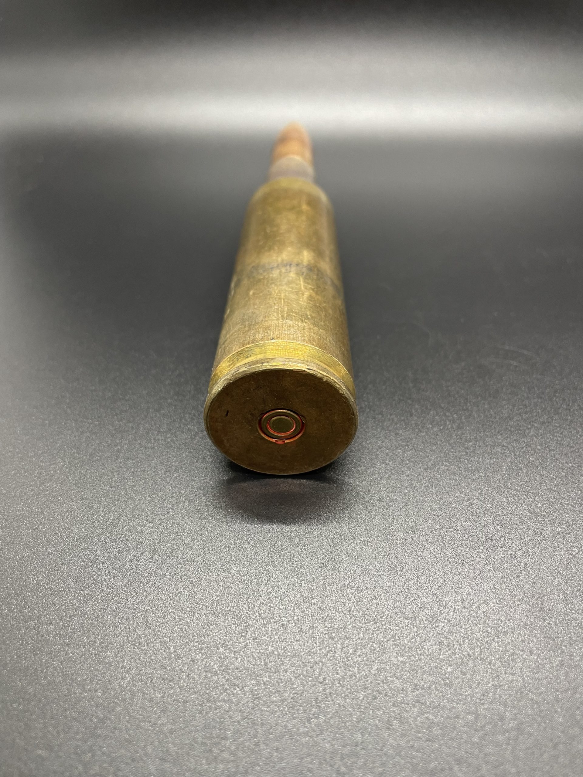 60 Caliber Ball T80 Single crimp round. Lot FA38. These rounds were made by Frankfort Arsenal for the M39 Revolver cannon on Korean Aircraft.