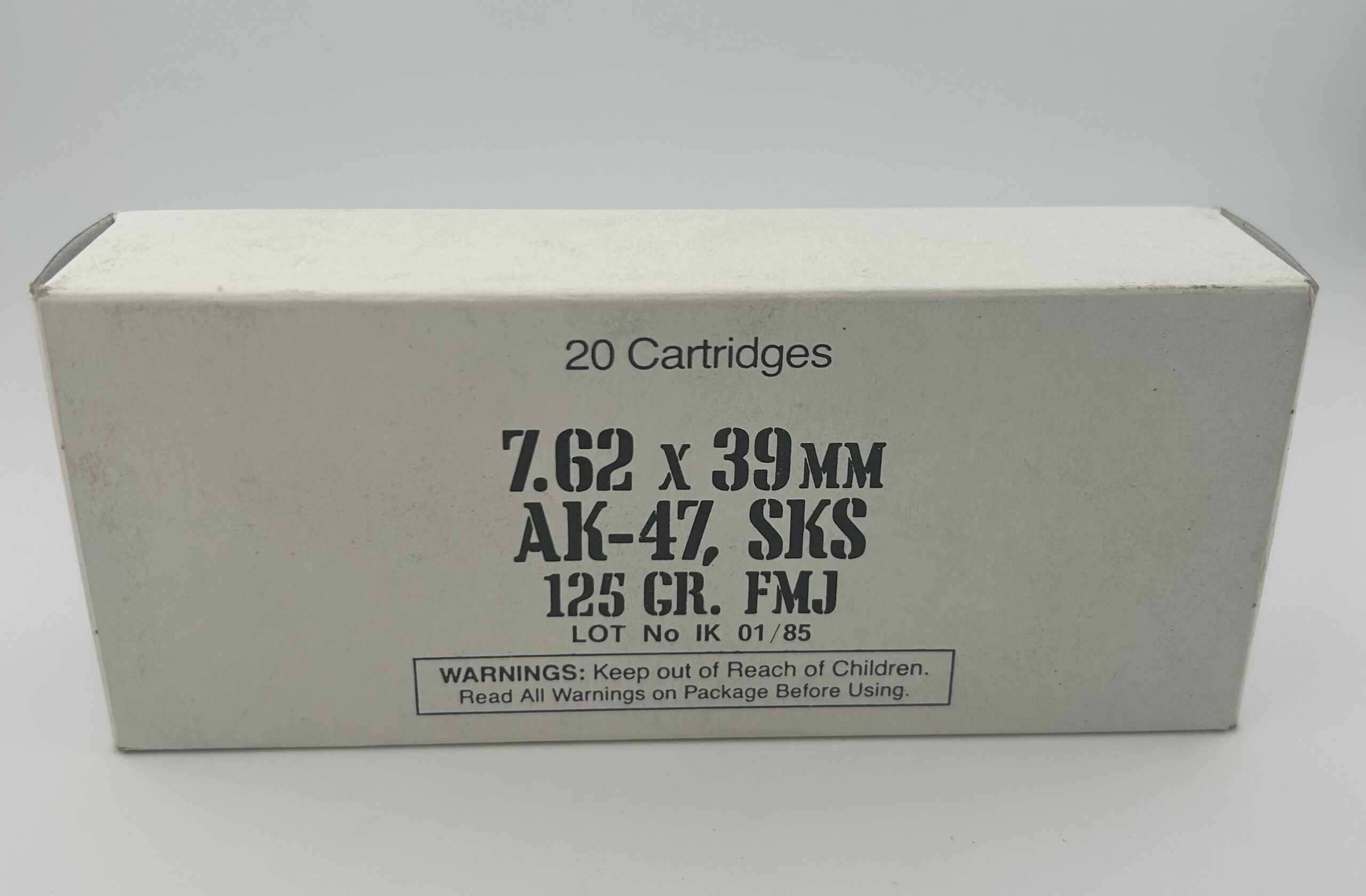 7.62×39 AK-47 SKS Yugoslavia 125 Grain, FMJ Ball Ammo. 20 Round Box