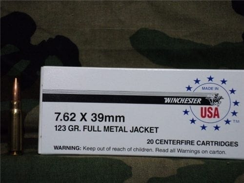 7.62×39 winchester ball ammo. Reloadable. 20 round box.