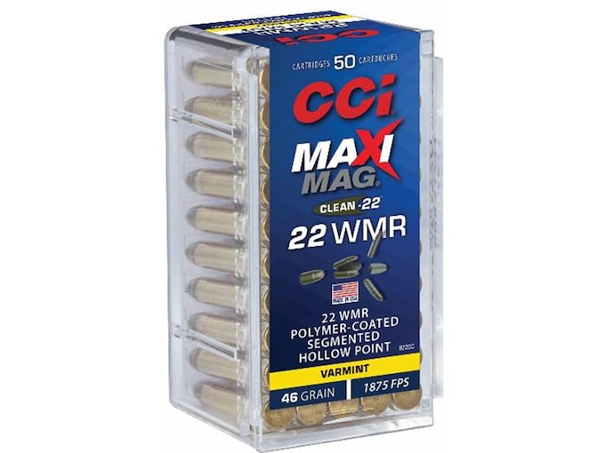 CCI Maxi-Mag Clean 22 WMR Ammo 46 Grain Polymer – Coated Segmented Hollow Point. 50 RDS.