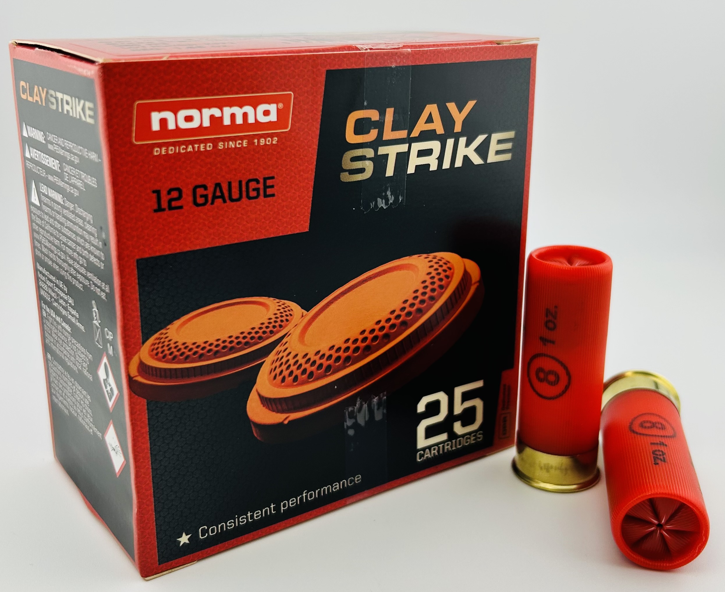 Introducing CLAYSTRIKE 12-gauge 2 3/4″ #8 shot 1oz shotgun shells from Norma. Crafted with precision, CLAYSTRIKE elevates your shooting experience to new heights. Designed for the discerning clay shooter, these premium cartridges deliver exceptional performance and reliability.