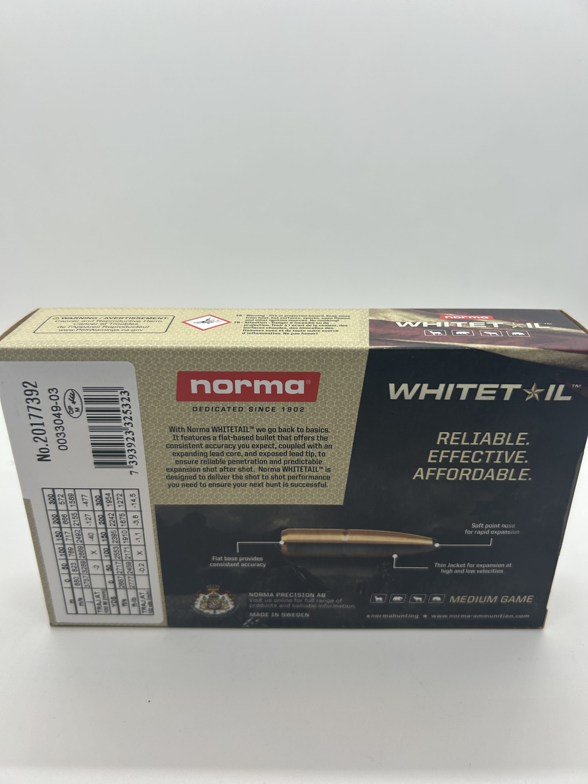 Norma’s Whitetail line of ammunition is loaded with the highest quality brass that meets and exceeds the standard set forth by reloaders. Norma’s proven soft-point bullet, matched with premium brass case allows for confidence in shot to shot performance. Norma Whitetail is designed to deliver the shot to shot performance you need to ensure your next hunt is always successful. This ammunition is new production, non-corrosive, in boxer-primed, reloadable brass cases.