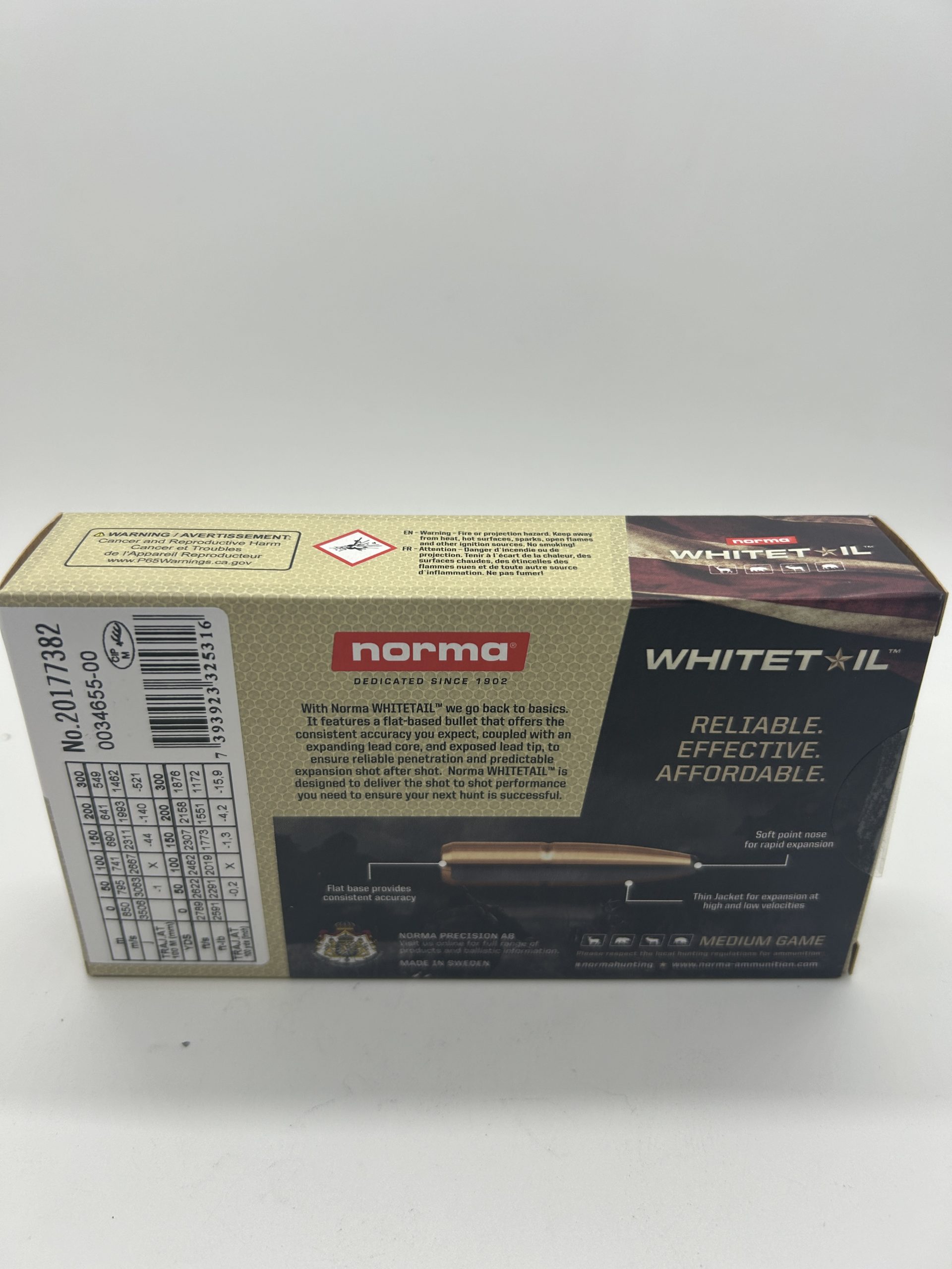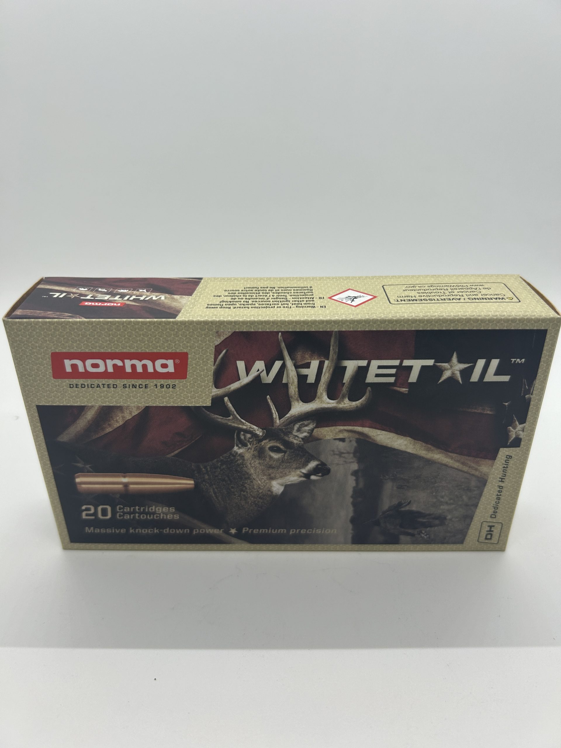 Norma’s Whitetail line of ammunition is loaded with the highest quality brass that meets and exceeds the standard set forth by reloaders. Norma’s proven soft-point bullet, matched with premium brass case allows for confidence in shot to shot performance. Norma Whitetail is designed to deliver the shot to shot performance you need to ensure your next hunt is always successful. This ammunition is new production, non-corrosive, in boxer-primed, reloadable brass cases.