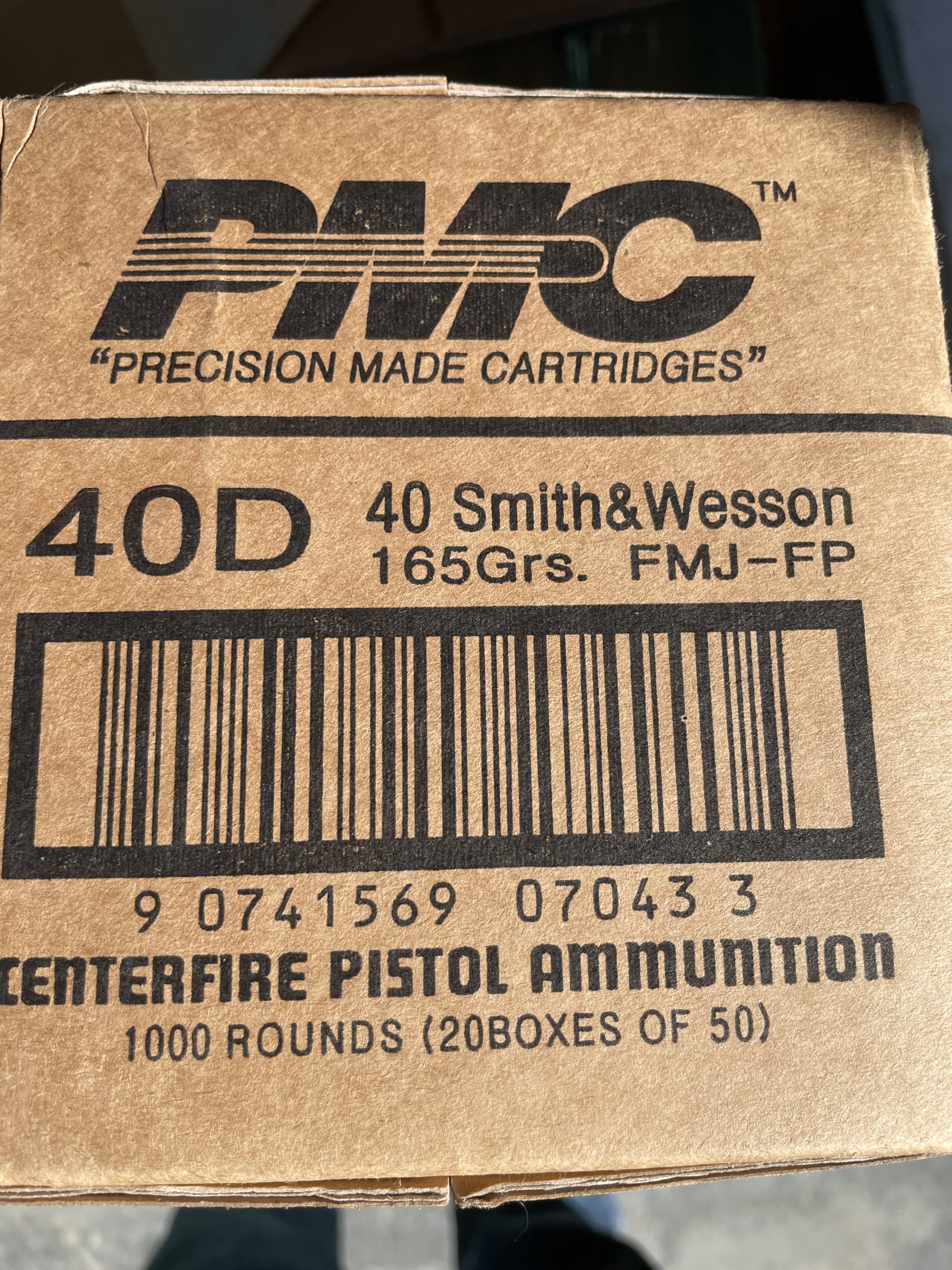 PMC Bronze .40 S&W Ammo 165 Grain Full Metal Jacket. 1000 round case.