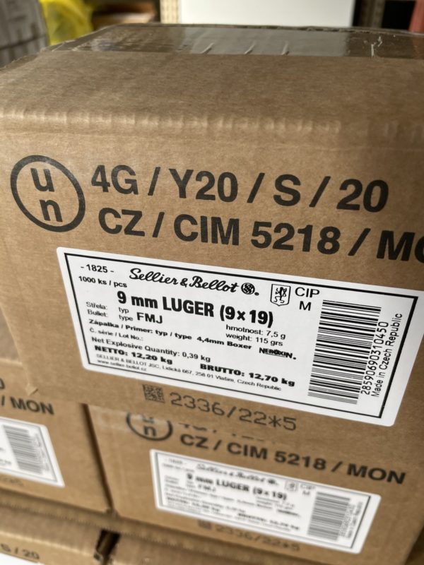 Sellier and Bellot 9mm Brass case, 115 Grain FMJ ammo. 50 round Box.