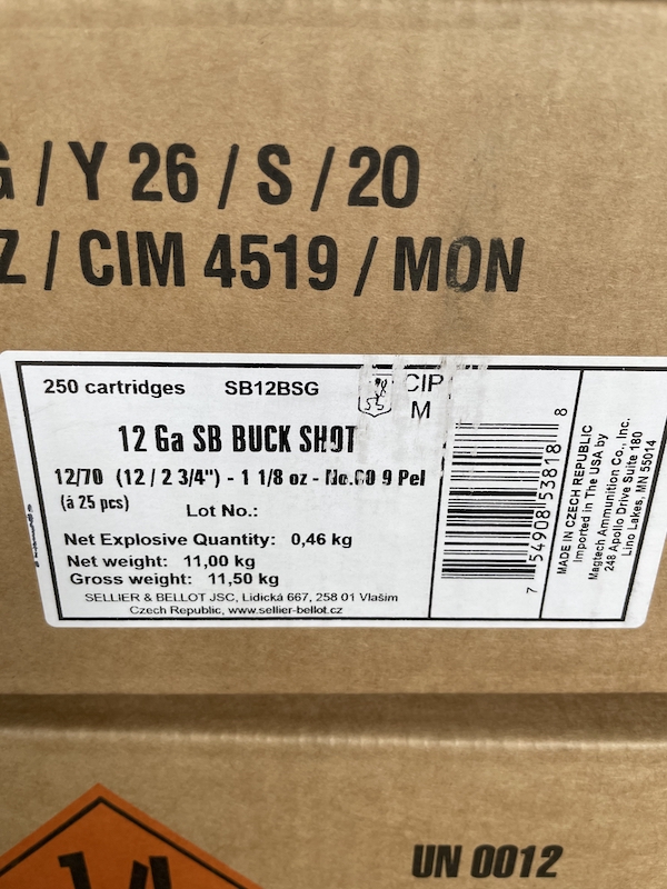 Sellier & Bellot 12 Gauge 00 buck is a great load for home defense or blasting away at the range, clear hull makes identification easy.