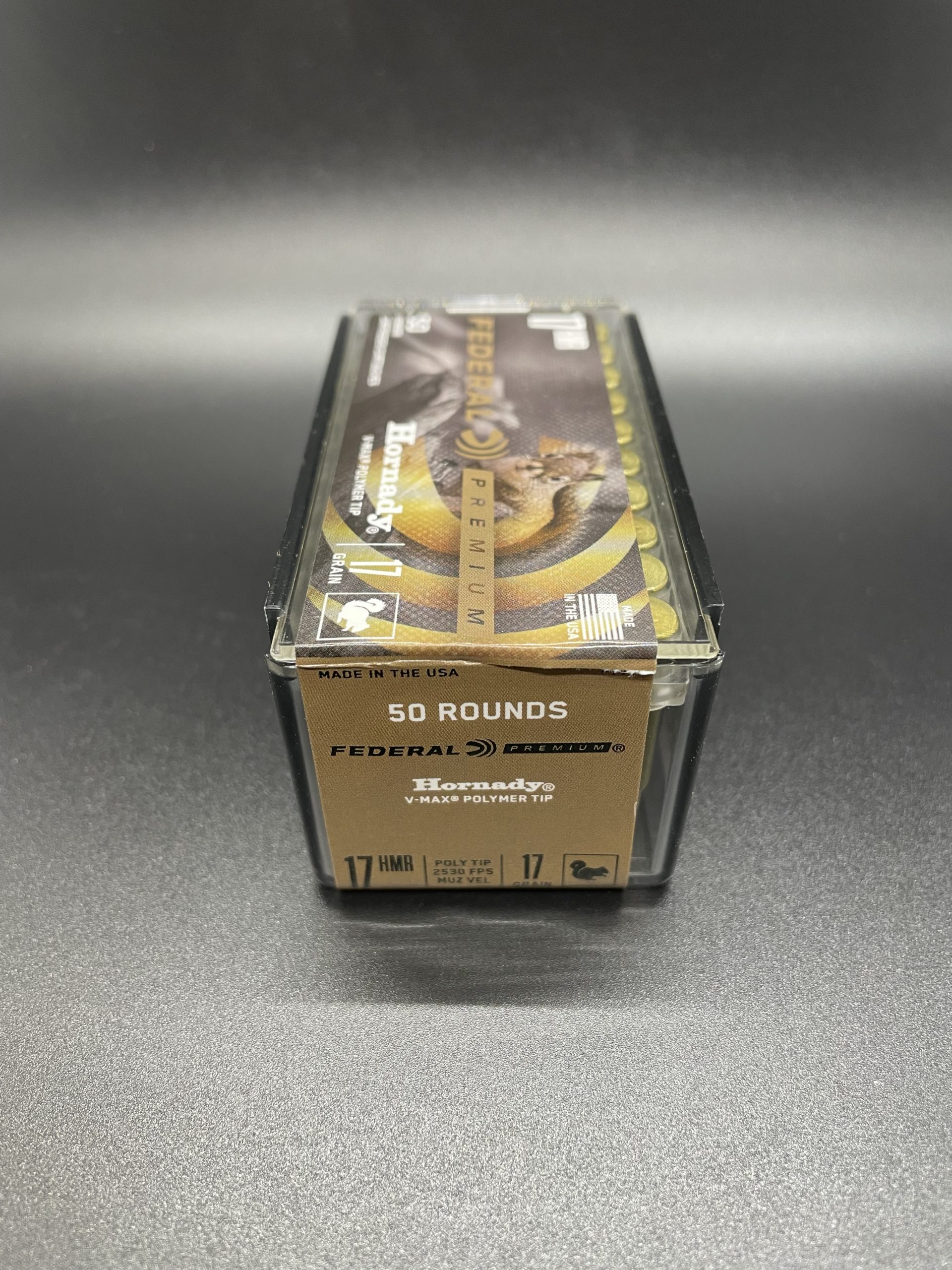 If you hunt varmints with a rimfire rifle, extract maximum range and power from the platform with Federal Premium Hornady® V-Max® loads. The polymer-tipped bullet’s thin jacket expands explosively and provides pinpoint long-range accuracy.