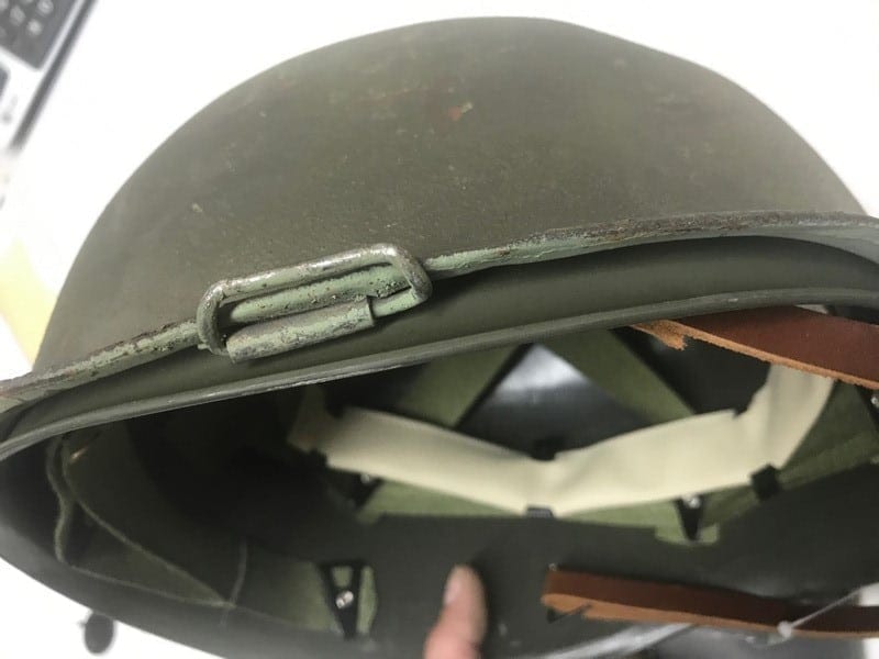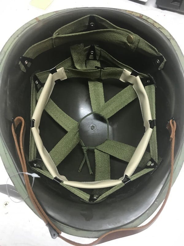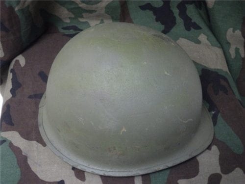 WW-2 AND VIETNAM ERA HELMETS, AS-IS, REPAINTED WITH AFTERMARKET LINER.